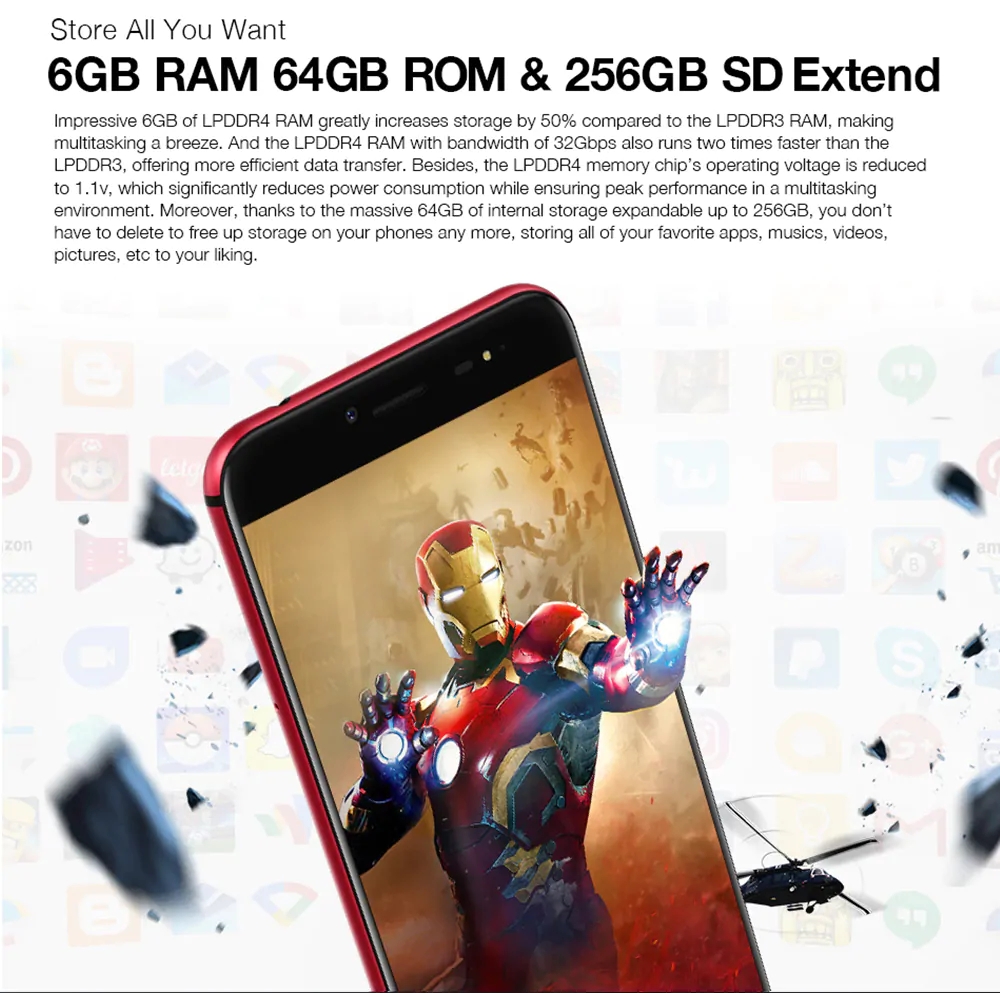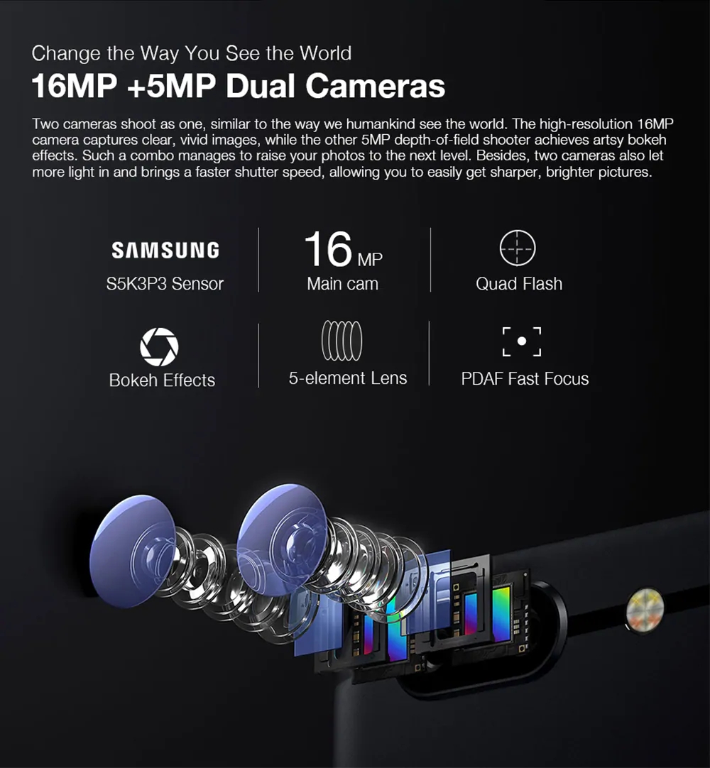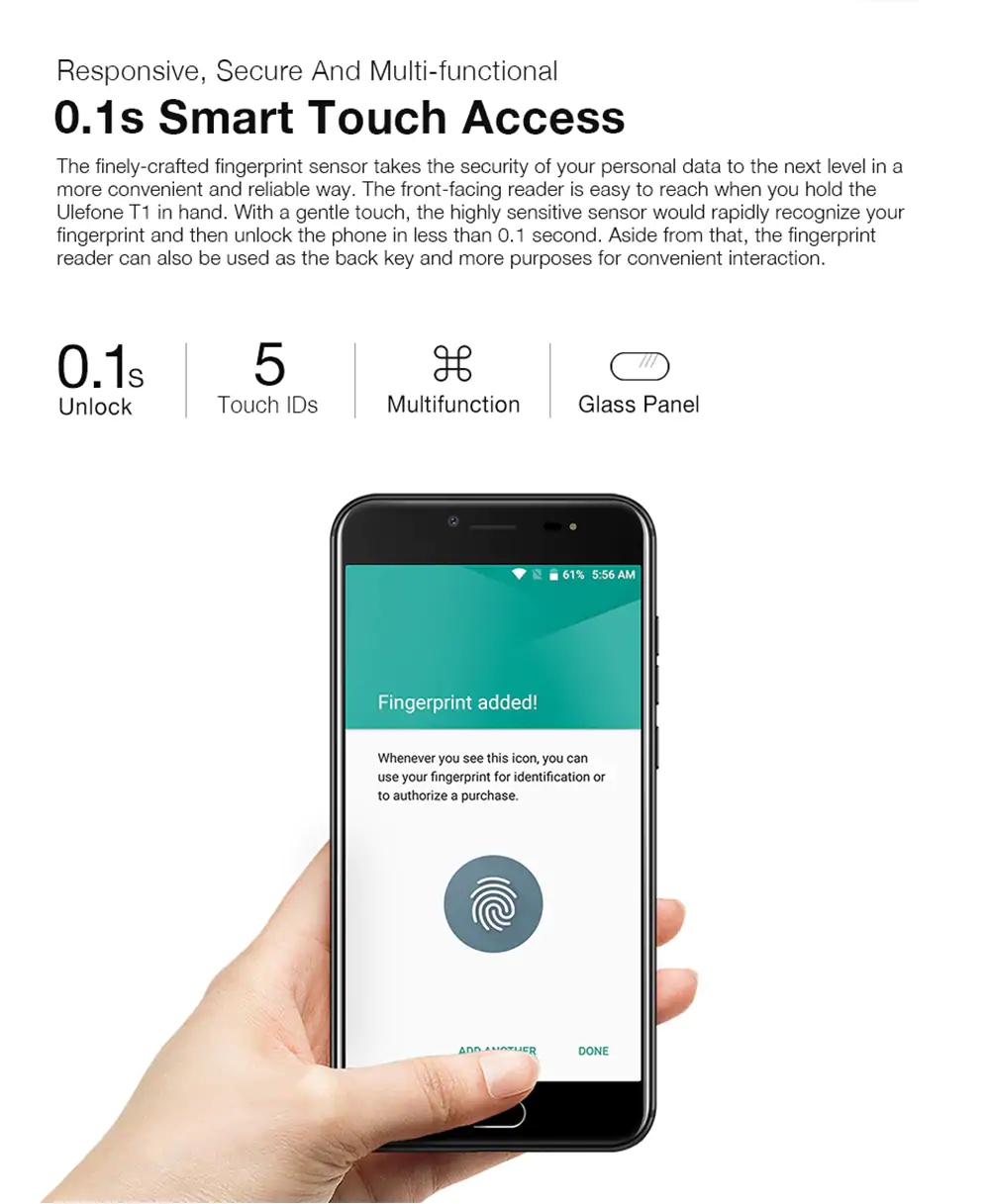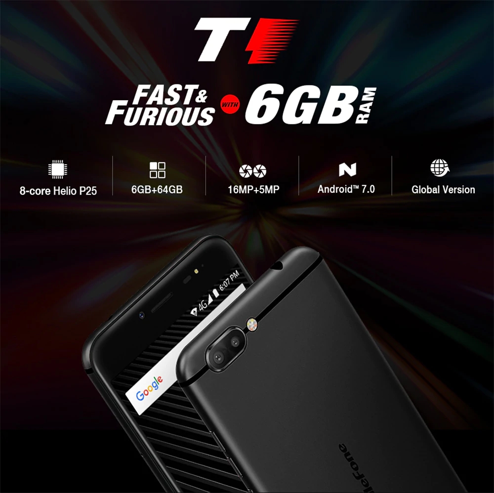 ULEFONE T1 5.5 Inch Android 7.0 6GB RAM 64GB ROM Rear dual camera 1600+500 front fingerprint unlock 3680MAH 4G phone