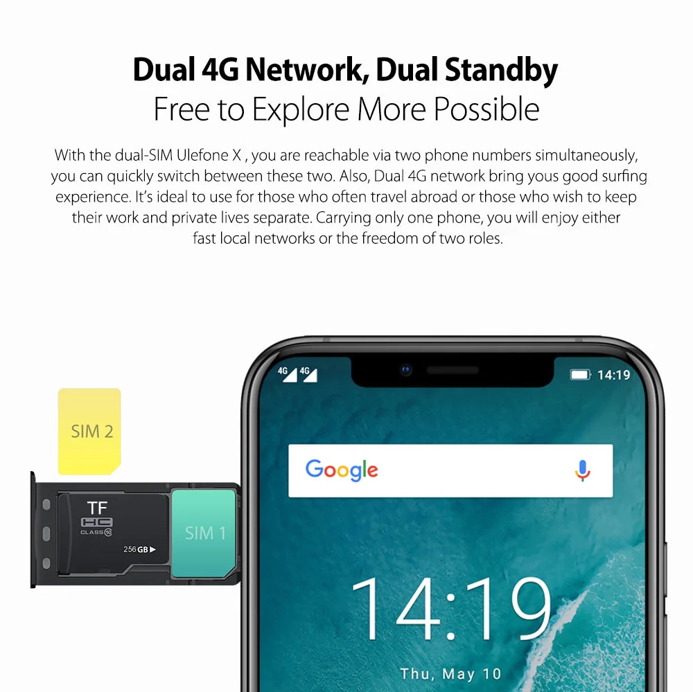 Ulefone X 5.85 Inch 4G 4GB RAM 64GB ROM 16.0MP + 5.0MP Rear Camera Fingerprint Sensor 4G phone